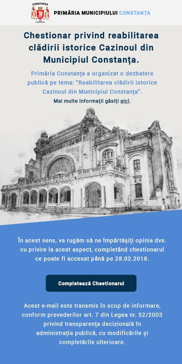 Chestionarele online realizate de Primăria Constanța au primit zeci de mii de răspunsuri